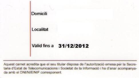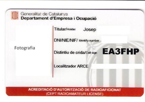 Per tal de poder disposar d’una identificació en català de l’autorització d’ús de l’espectre radioelèctric per aficionats, la Direcció General de Telecomunicacions i Societat de la Informació emet uns carnets que informen sobre l’autorització atorgada per la Secretaria d’Estat de Telecomunicacions i Societat de la Informació i ha d’anar acompanyat amb el DNI/NIF/NIE del titular.
