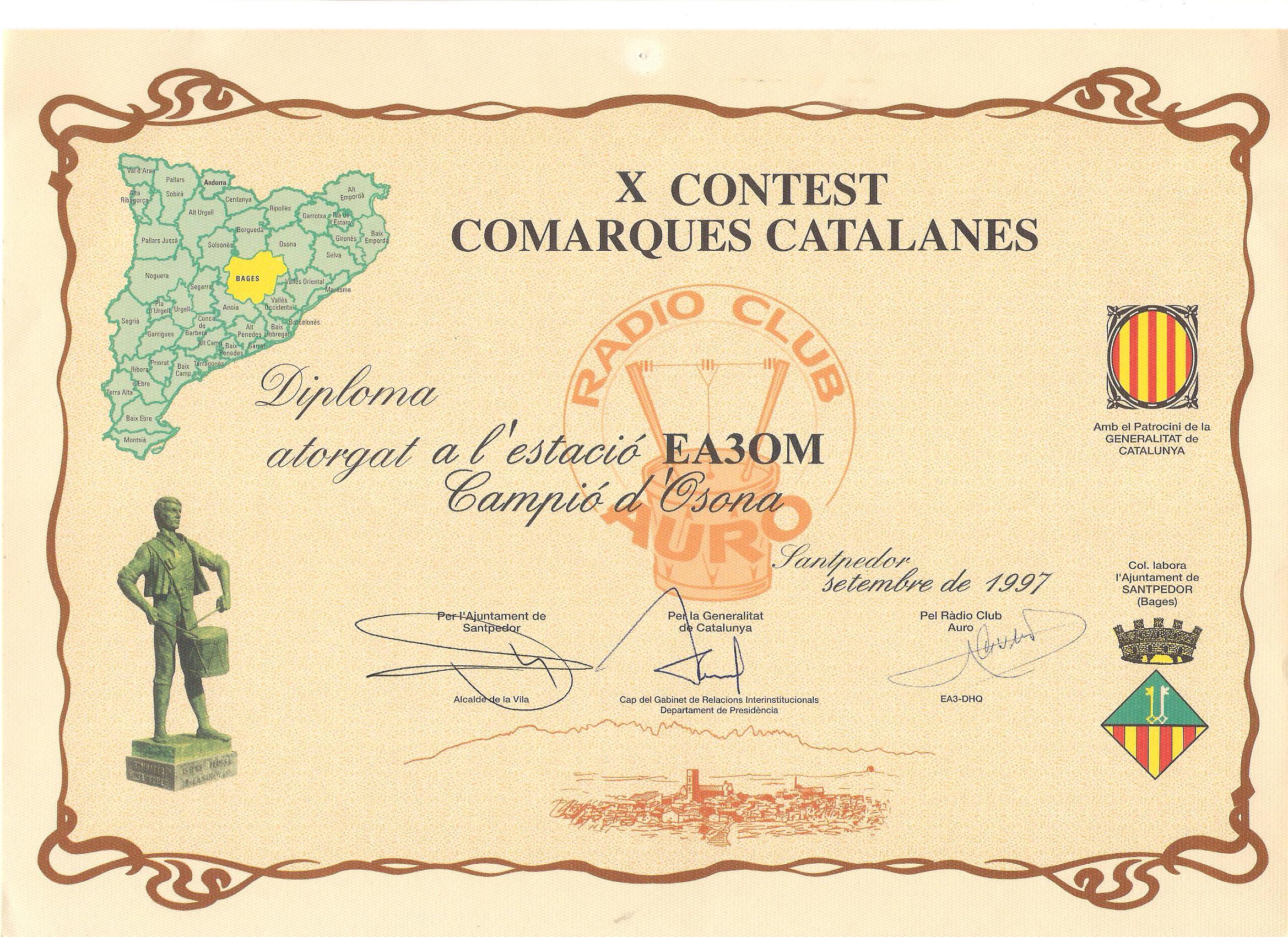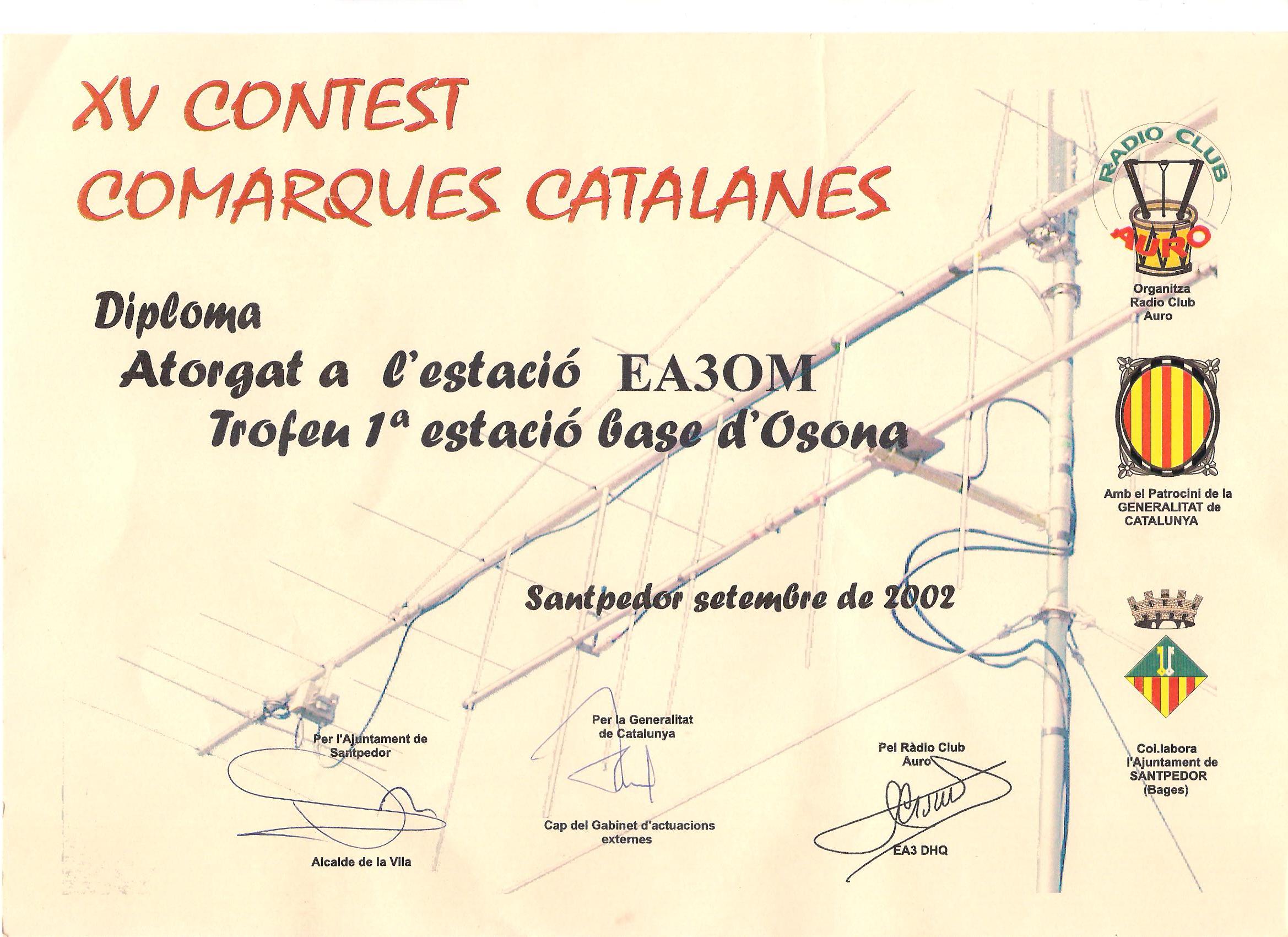 Diplomes de l’estació EA3OM Diversos diplomes atorgats a Joan Crespiera, EA3OM pels mèrits aconseguits. Aquesta presentació amb diapositives necessita JavaScript. EA3IR (Gonçal) i EA3OM (Joan) participant en un concurs a Collsuspina. Relacionats Radioaficionats