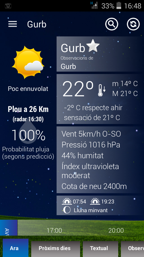 – Predicció meteorològica de 7 dies i detallada per hores.