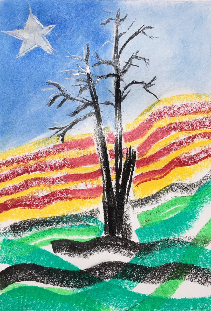 El Pi de les Tres Branques, una excel·lent pintura del radioaficionat Berguedà fill de Queralt Josep Maria Hontangas (EA3FJX).