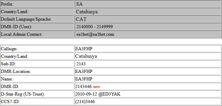 L’estació de radioaficionat EA3FHP s’ha inscrit al sistema DMR (Digital Mobile Radio) tot i que ja ho estava des del 15 de juny de 2016 amb un altre número d’usuari. A causa d’un error informàtic que hi va haver en el moment de la primera inscripció, s’ha atorgat un nou número d’usuari, el 2143446 que ja està validat i en correcte funcionament.