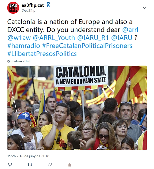 Estimats senyors de l’ARRL (American Radio Relay League), Catalunya és una nació d’Europa i també una entitat DXCC. Si us plau, admeteu Catalunya a la llista de països del vostre diploma ara mateix!