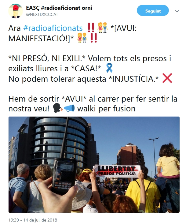 Radioaficionats a la manifestació per a l’alliberament dels presos polítics