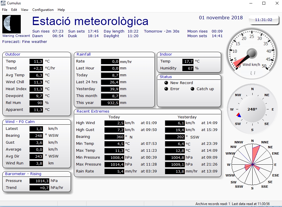 El desenvolupador i autor del popular programari per a estacions meteorològiques “Cumulus” deixarà de donar suport a aquest programa, no l’actualitzarà més i tancarà el fòrum i la pàgina web de descàrregues. El “Cumulus” és programa molt popular entre els aficionats i professionals de la meteorologia, ja que és apte per a diverses marques i models d’estacions meteorològiques i funciona molt bé. | Descàrrega de l’última versió del Cumulus 1.9.4