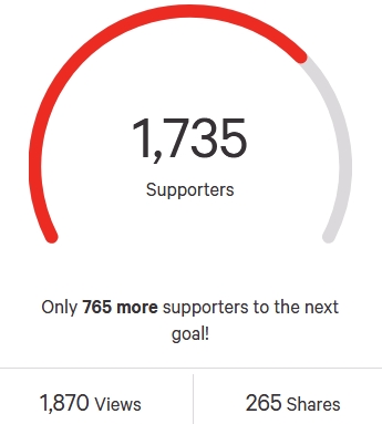 Per a aconseguir l’objectiu, hem de continuar augmentant el nombre de peticions. Els que no hagin signat ho poden fer aquí.