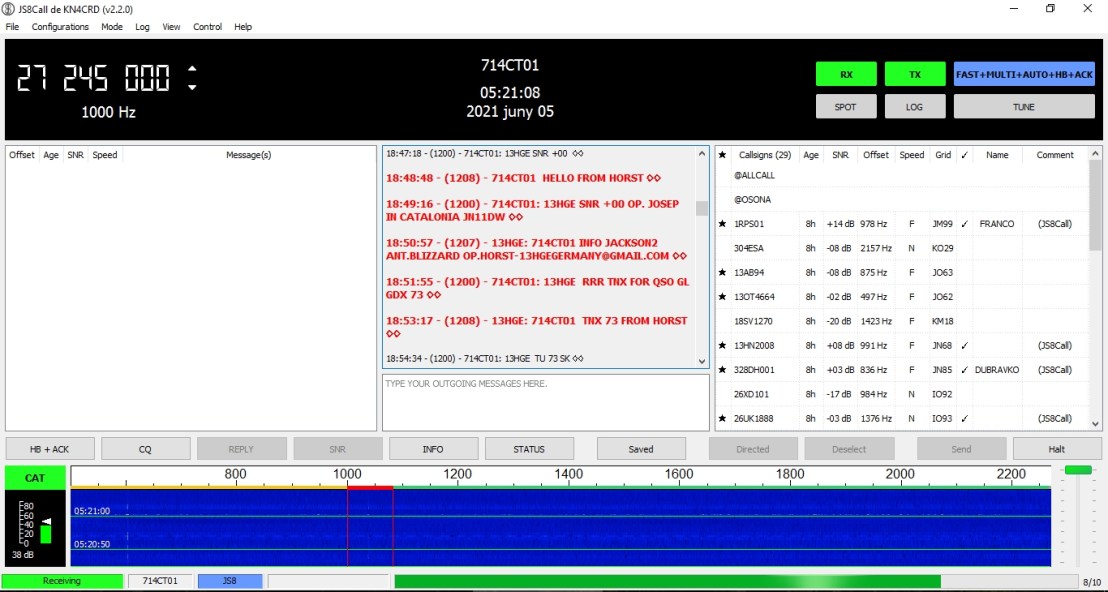 Des de fa uns dies hi comença a haver força activitat a la banda de 27 MHz amb el mode JS8 a la freqüència de 27.245 (Canal 25).