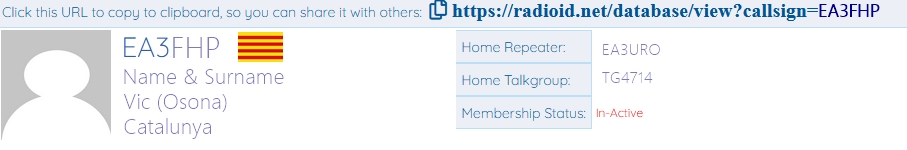 Pel que fa a RadioID.net, un administrador ens ha enviat aquesta lamentable resposta: El propietari de RadioID coneix aquest tema i nosaltres, com a equip, parlem de la mateixa manera, així que no cal que li presentis la teva reclamació. El vostre país no pot ser Catalunya perquè no ha existit mai a la història, el que és cert és que avui Catalunya no existeix, és una comarca situada a Espanya i els vostres repetits intents de mostrar-ho són inadequats per a la resta d’usuaris.