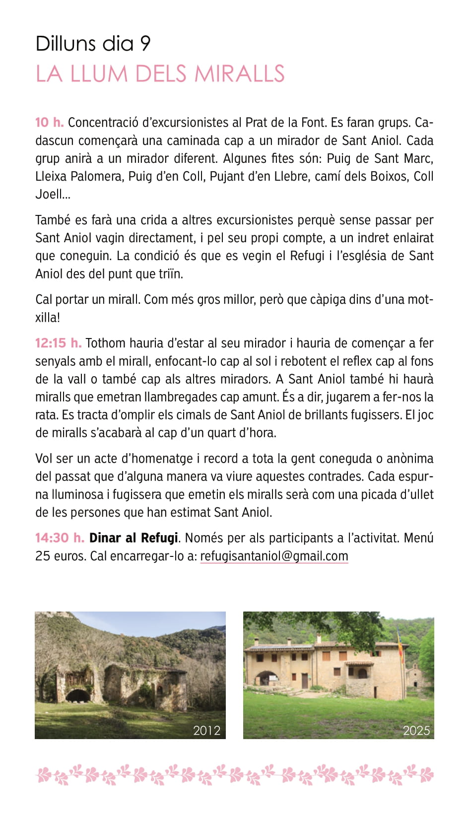 Aplec de Sant Aniol d’Aguja. Aplec i inauguració del refugi el diumenge, 8 de juny de 2025.