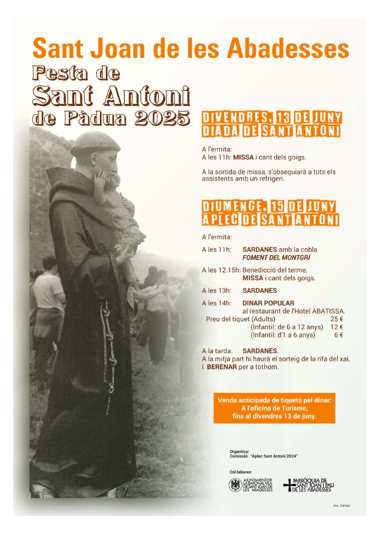 Festa de Sant Antoni de Pàdua Festa de Sant Antoni de Pàdua. Sant Joan de les Abadesses (Ripollès). Aplec de Sant Antoni, diumenge 15 de juny de 2025. Relacionats Radioaficionats