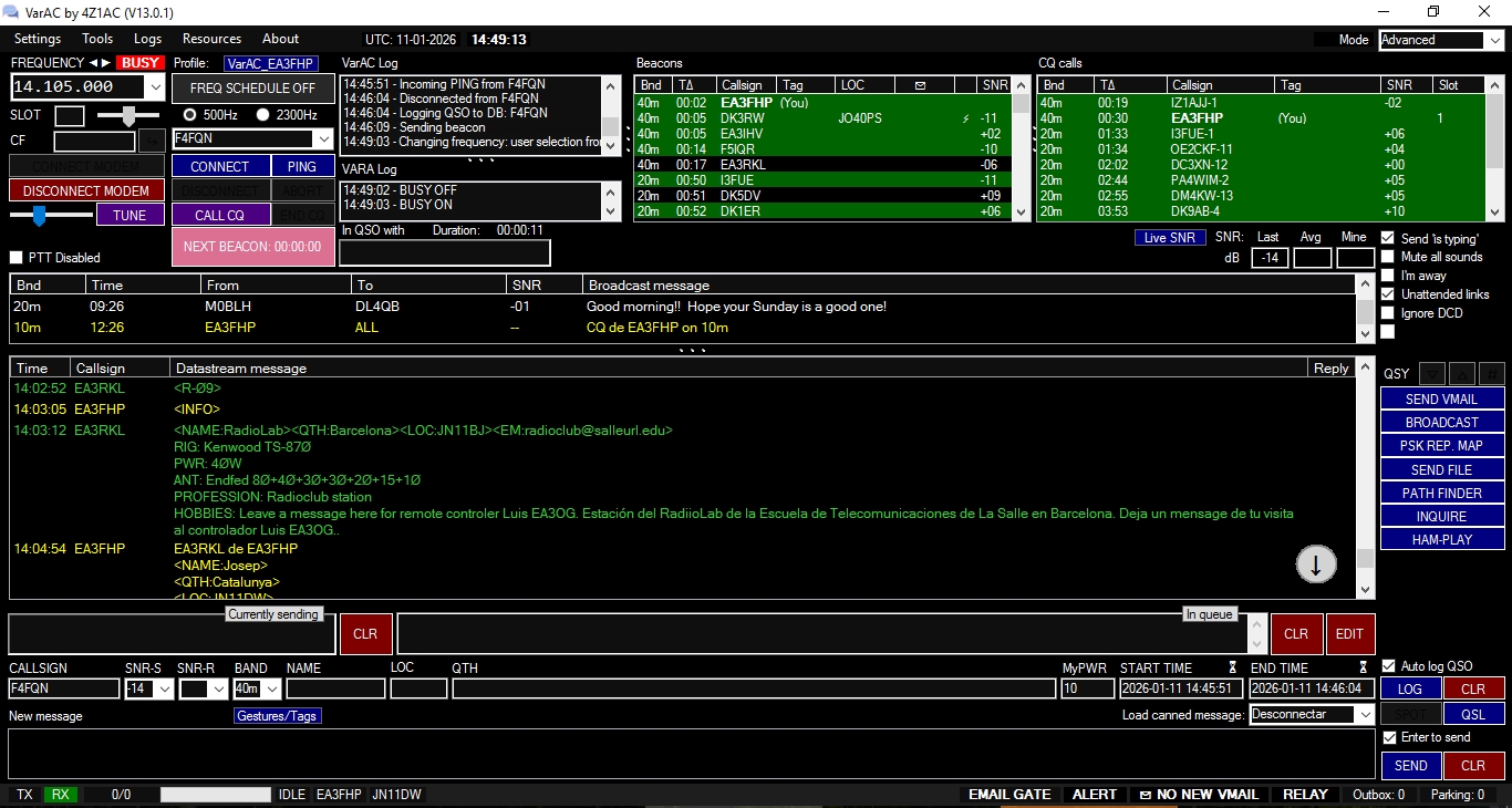Envia i rep correus electrònics mitjançant altres estacions VarAC. - HamPlay