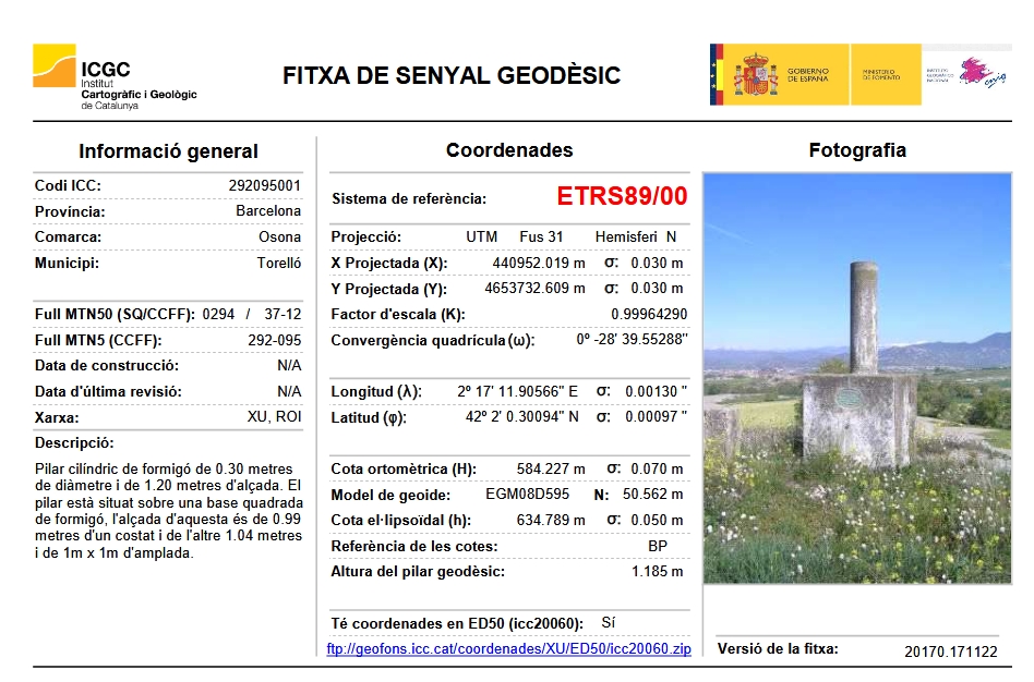 Llista de vèrtexs geodèsics de Catalunya. (Total 4.061 vèrtexs)