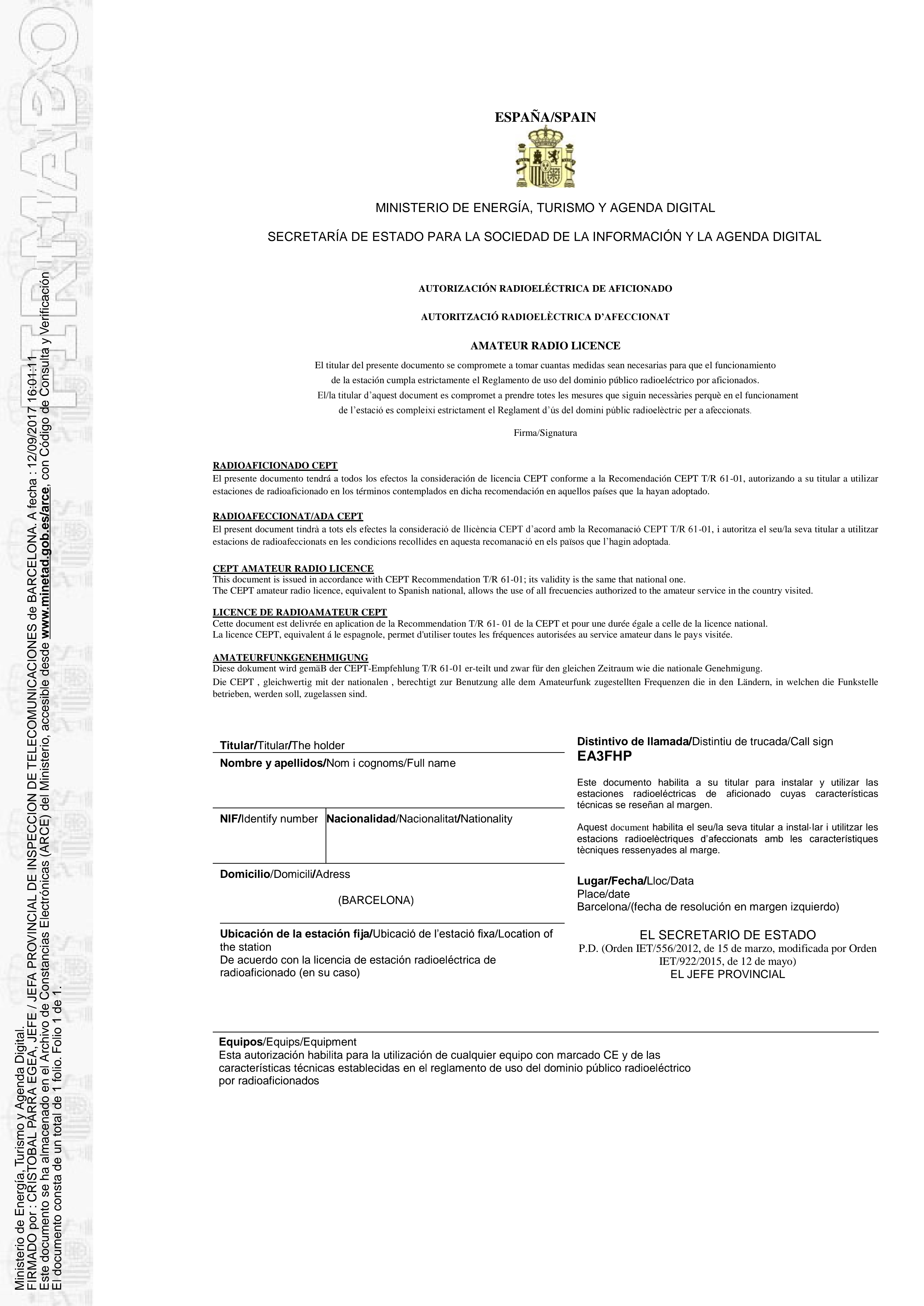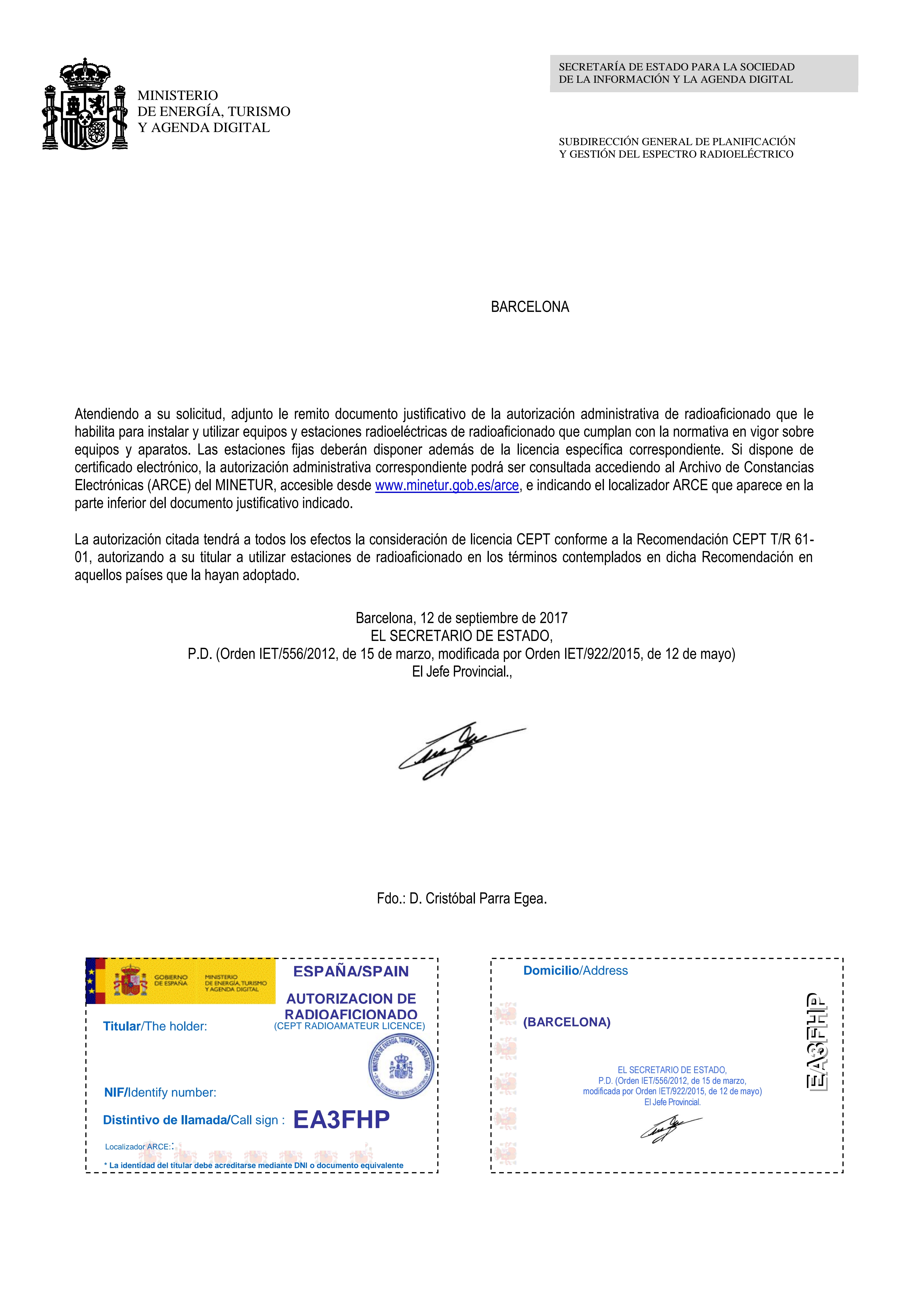 Carnets de soci de l’Organització Europea de Radioaficionats (EURAO) i la Federació Digital EA (FEDI-EA) atorgats el 12 de març de 2021.