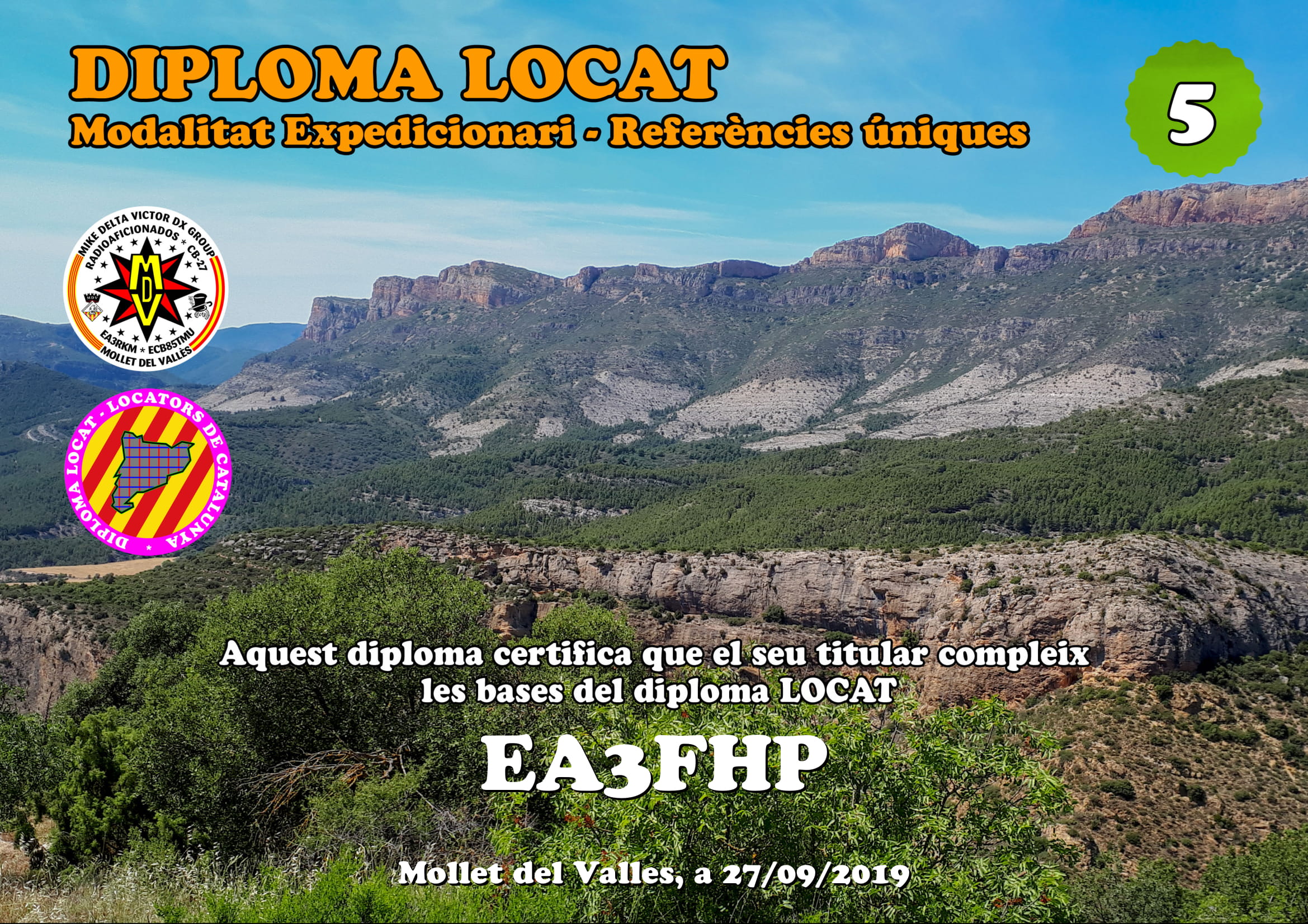 Diplomes LOCAT (Locators de Catalunya) atorgats a EA3FHP.