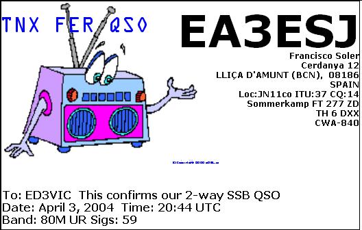 Targetes QSL de l’estació ED3VIC (Mercat del Ram de Vic) dels anys 2004, 2005 i 2006. Operador i titular EA3FHP.